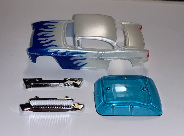 T-Dash 50's Coupe - Pearl White w/Blue flames - This body is for T-Jet Chassis (screw on)