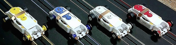 The body clip expands the ability of this chassis to not only use t-jet style screw on bodies but also the huge amount of snap on 1.5" wheel base bodies put out over the years by AFX, AW, Dash, resin casters, etc. We'll have different height clips available to tailor your body height.